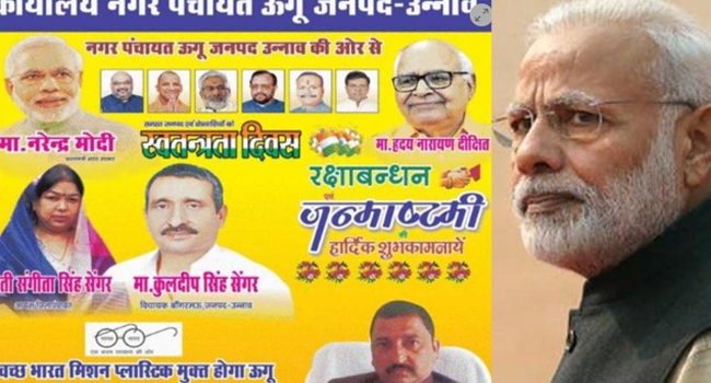 ഉന്നാവ് ബലാത്സംഗ കേസിലെ പ്രതി കുല്ദീപ് സിങ് മോദിക്കൊപ്പം പരസ്യത്തില്; സംഭവം വിവാദമാകുന്നു