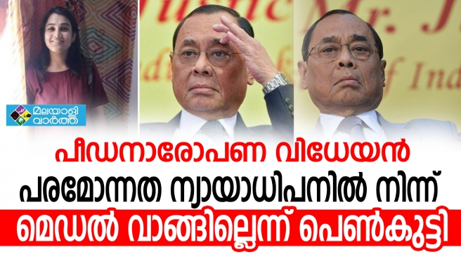 പീഠനാരോപണ വിധേയനായ പരമോന്നത ന്യായാധിപനായ രഞ്ജന് ഗോഗോയില് നിന്ന്; മെഡല് വാങ്ങില്ലെന്ന് പെണ്കുട്ടി