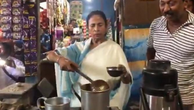 ചായപ്പാത്രം വാങ്ങി ചായ വിതരണം ചെയ്ത മമത ബാനർജി