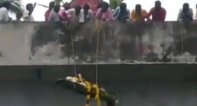 ദലിത് വയോധികന്റെ മൃതദേഹം ശ്മശാനത്തില് എത്തിച്ചത് പാലത്തില്നിന്നും കയറിലൂടെ കെട്ടിയിറക്കി!