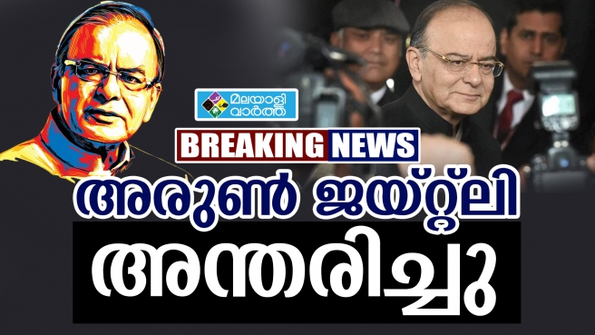മുന് കേന്ദ്ര ധനകാര്യ മന്ത്രിയും മുതിര്ന്ന ബിജെപി നേതാവുമായ അരുണ് ജെയ്റ്റ്ലി അന്തരിച്ചു. ദീർഘനാളായി ചികിൽസയിലായിരുന്നു. എയിംസില് ചികിത്സയില് കഴിഞ്ഞിരുന്ന അദ്ദേഹത്തിന്റെ ആരോഗ്യനില ഇന്ന് പുലര്ച്ചയ്ക്കാണ് വീണ്ടും ഗുരുതരമായത്. ഐസിയുവില് കഴിഞ്ഞിരുന്ന അരുണ് ജെയ്റ്റ്ലി വെന്റിലേറ്ററിന്റെ സഹായത്തോടെയാണ് ജീവന് നിലനിര്ത്തിയിരുന്നത്.