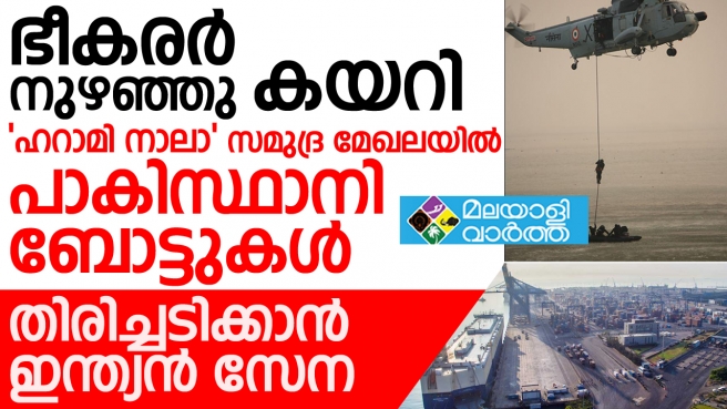 ഹറാമി നാലാ' സമുദ്ര മേഖലയിൽ പാകിസ്ഥാനി ബോട്ടുകൾ ഉപേക്ഷിക്കപ്പെട്ട നിലയിൽ കണ്ടെത്തി. രണ്ട് പാകിസ്ഥാനി ബോട്ടുകളാണ് ഉപേക്ഷിക്കപ്പെട്ട നിലയിൽ കണ്ടെത്തിയിരിക്കുന്നത്. ഹറാമി നാലാ ഉൾക്കടൽ വഴി കമാൻഡോകൾ നുഴഞ്ഞു കയറിയെന്നാണ് സൂചന. ഗുജറാത്തിലെ കച്ച് മേഖലയിൽ തുറമുഖങ്ങൾക്ക് അടക്കം കനത്ത ജാഗ്രതാനിർദേശമാണ് കേന്ദ്രസർക്കാർ നൽകിയിരിക്കുന്നത്. പാകിസ്ഥാനിൽ നിന്ന് പരിശീലനം നേടിയ കമാൻഡോകൾ മേഖലയിൽ നുഴഞ്ഞു കയറിയിരിക്കാമെന്ന മുന്നറിയിപ്പിനെത്തുടർന്നാണ് തീരാ ദേശ മേഖലയിൽ കനത്ത ജാഗ്രതാ നിർദേശവും പരിശോധനയും നടക്കുന്നത്.
