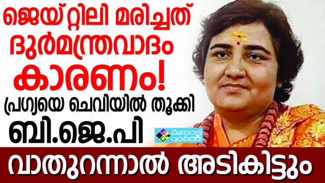 മുന് കേന്ദ്ര മന്ത്രിമാരായ സുഷമ സ്വരാജിന്റെയും അരുണ് ജെയ്റ്റ്ലിയുടെയും മരണകാരണം പ്രതിപക്ഷത്തിന്റെ ദുര്മന്ത്രവാദം മൂലമെന്ന് പ്രഗ്യ സിങ് താക്കൂര് ആരോപിചിരുന്നു. ദേശീയ മാധ്യമമാണ് ഇത് സംബന്ധിച്ച റിപ്പോര്ട്ട് പുറത്ത് വിട്ടത്. ബിജെപിയുടെ സംസ്ഥാന ഓഫീസില് മുന് കേന്ദ്രമന്ത്രി അരുണ് ജെയ്റ്റ്ലിക്കും മധ്യപ്രദേശ് മുന് മുഖ്യമന്ത്രി ബാബുലാല് ഗൗറിനും ആദരാഞ്ജലി അര്പ്പിക്കാന് ചേര്ന്ന യോഗത്തിലാണ് പ്രഗ്യ സിങ്ങിന്റെ വിവാദ പരാമര്ശം.