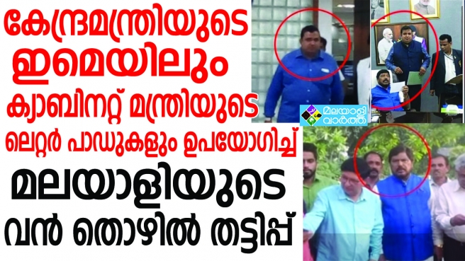 കേന്ദ്രമന്ത്രിയുടെ മെയിൽ ഐഡിയിൽ നിന്ന് നിയമനക്കത്ത്; ചുരുളഴിയുമ്പോൾ പുറത്ത് വരുന്നത് മലയാളിയുടെ വൻ തട്ടിപ്പ്:- തട്ടിപ്പിൽ 10 പേർക്ക് നഷ്ടമായത് 20 ലക്ഷം രൂപ