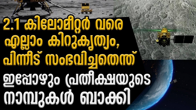 ഇന്ത്യയുടെ ചാന്ദ്ര ദൗത്യത്തില് 2.1 കിലോമീറ്റര് വരെ എല്ലാം കിറുകൃത്യം, പിന്നീട് സംഭവിച്ചതെന്ത് ഇപ്പോഴും പ്രതീക്ഷയുടെ നാമ്പുകള് ബാക്കി