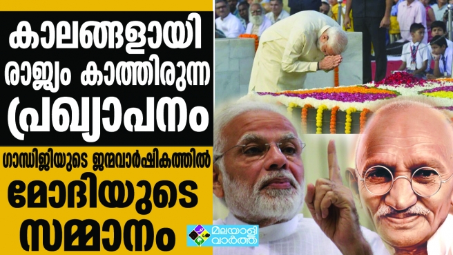 രാഷ്ട്ര പിതാവ് മഹാത്മാഗാന്ധിയുടെ 150-ാം ജന്മവാർഷികം രാജ്യം വിപുലമായ ചടങ്ങുകളോടെ ആഘോഷിക്കുകയാണ്. പ്രധാനമന്ത്രി നരേന്ദ്രമോദി മഹാത്മാഗാന്ധിയുടെ അന്ത്യവിശ്രമസ്ഥലമായ രാജ്ഘട്ടിലെത്തി പുഷ്പാർച്ചന നടത്തി. ഭജൻ പാടിക്കൊണ്ടിരുന്ന സംഘത്തോടൊപ്പം പ്രധാനമന്ത്രി അൽപസമയം ചെലവഴിക്കുകയും ചെയ്തു. രാഷ്ട്ര പിതാവിന്റെ ജന്മവാർഷിക ദിനത്തിൽ രാജ്യത്തിനായി വമ്പൻ പ്രഖ്യാപനമാണ് മോദിനടത്താൻ പോകുന്നത്. രാജ്യത്തെ വെളിയിട വിസർജന വിമുക്തമായി പ്രധാനമന്ത്രി ഇന്ന് പ്രഖ്യാപിക്കും. രാജ്യം നേരിടുന്ന ഏറ്റവും വലിയൊരു പ്രതിസന്ധി തന്നെയാണ് വെളിയിട വിസർജനം. പ്രധാനമന്ത്രിയുടെ പ്രഖ്യാപനത്തെ രാജ്യം വളരെ പ്രാധാന്യത്തോടെ തന്നെയാണ് ഉറ്റുനോക്കുന്നത്.