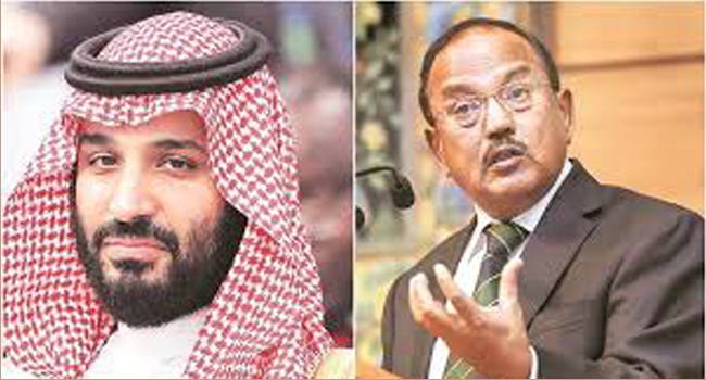 ദേശീയ സുരക്ഷാ ഉപദേഷ്ടാവ് അജിത് ഡോവല് സൗദി കിരീടാവകാശി മുഹമ്മദ് ബിന് സല്മാന് രാജകുമാരനുമായി കൂടിക്കാഴ്ച നടത്തി ; കശ്മീർ വിഷയം ചർച്ച ചെയ്തു