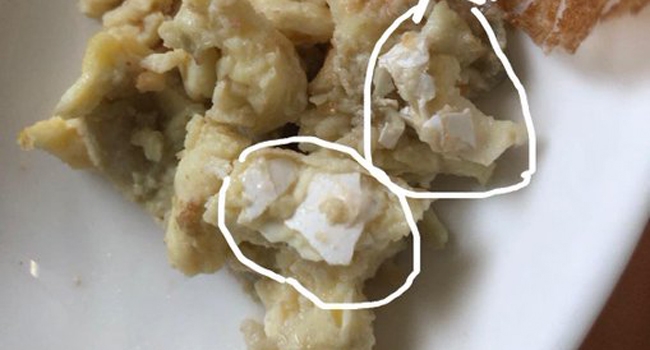 എയര് ഇന്ത്യ വിമാനത്തില് എന്.സി.പി എം.പിക്ക് നല്കിയ ഭക്ഷണത്തില് മുട്ടത്തോട്. എം.പി വന്ദന ചവാന് നല്കിയ ഓംലെറ്റിൽ മുട്ടത്തോട് കണ്ടെത്തുകയായിരുന്നു. എം.പി നൽകിയ പരാതിയില് കാറ്ററിംഗ് കമ്പനിക്കെതിരെ എയര് ഇന്ത്യ പിഴ ചുമത്തുകയുണ്ടായി . പൂനെ-ഡല്ഹി എയര് ഇന്ത്യ വിമാനത്തിൽ കഴിഞ്ഞ ആഴ്ചയാണ് സംഭവം നടന്നത്.
