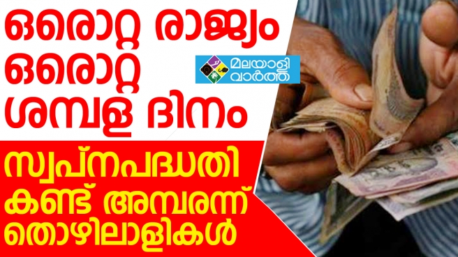 ഒരു രാഷ്ട്രം, ഒരു ശമ്പള ദിനം' സംവിധാനം ഏര്പ്പെടുത്താന് കേന്ദ്രം ;രാജ്യം മുഴുവന് ഒരു ദിവസം എല്ലാ തൊഴിലാളികള്ക്കും ശമ്പളം കിട്ടുന്ന വിധത്തിലുള്ള നിയമ നിര്മാണം ഉടന്
