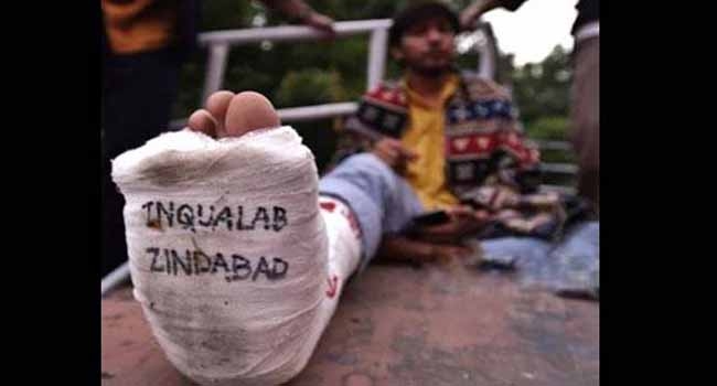 പരിക്കേറ്റ കാലില് ഇട്ടിരിക്കുന്ന പ്ലാസ്റ്ററില് 'ഇന്ക്വിലാബ് സിന്ദാബാദ്' എന്ന് മുദ്രാവാക്യം എഴുതി സമരത്തില് പങ്കെടുക്കുന്ന വിദ്യാര്ത്ഥിയുടെ ചിത്രവും സോഷ്യല് മീഡിയയില് വൈറലായിക്കൊണ്ടിരിക്കുകയാണ്. അതേസമയം, വിദ്യാര്ത്ഥികള്ക്ക് എതിരായ പോലീസ് നടപടിക്കെതിരെ അധ്യാപക സംഘടനകള് ക്യാമ്പസില് പ്രതിഷേധം നടത്തും.