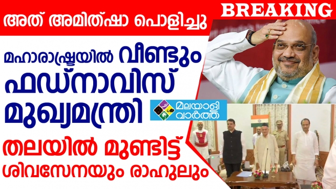 മഹാരാഷ്ട്രയിലെ രാഷ്ട്രീയ നാടകത്തിന് അന്ത്യം. ബിജെപി അധ്യക്ഷനും ആഭ്യന്തരമന്ത്രിയുമായ അമിത്ഷായുടെ കൂര്മ്മബുദ്ധി ഫലം കണ്ടിരിക്കുകയാണ്. മഹാരാഷ്ട്രയില് അതിനാടകീയ നീക്കത്തിനൊടുവില് ദേവേന്ദ്ര ഫഡ്നാവിസ് മുഖ്യമന്ത്രിയായി സത്യപ്രതിജ്ഞ ചെയ്തു. ബിജെപിഎന്സിപി സഖ്യമാണ് സര്ക്കാര് രൂപീകരിച്ചത്.