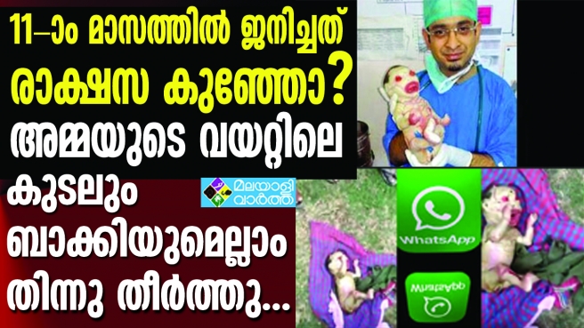 ജനിച്ചപ്പോൾ എട്ട് കിലോയുണ്ടായിരുന്ന കുട്ടി 24 മണിക്കൂർ കൊണ്ട് 13 കിലോയായി. 17 ഇഞ്ചക്ഷൻ നൽകിയാണ് കുട്ടിയെ കൊന്നത്. പതിനൊന്നാം മാസം ജനിച്ച കുട്ടി അമ്മയുടെ വയറ്റിലെ കുടലും ബാക്കിയെല്ലാം തിന്നു തീർത്തിട്ടാണ് പുറത്തെത്തിയത്. കഴിഞ്ഞ കുറച്ചു ദിവസങ്ങളായി സോഷ്യൽ മീഡിയയെ പരിഭ്രാന്തിയിലാഴ്ത്തിയ ഒരു വീഡിയോയായിരുന്നു ഇത്. അസമിലെ ഗുവാഹത്തിയിലുള്ള ജില്ലാ ആശുപത്രിയിൽ ജനിച്ച രാക്ഷസരൂപമുള്ള കുട്ടിയെ ഗുവാഹത്തിയിലേയ്ക്ക് പോയ ഒരു എസ്ഐ കണ്ടപ്പോൾ നൽകുന്ന വിശദീകരണം എന്ന മട്ടിലാണ് വോയ്സ് ക്ലിപ്പും നുണ പ്രചാരണവും പൊടിപൊടിക്കുന്നത്.