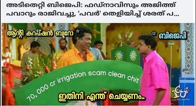 ബിജെപിയിലേക്ക് ഒറ്റ രാത്രി കൊണ്ട് വന്ന അജിത് പവാർ മുഖ്യമന്ത്രിയായതും അഴിമതി കേസിൽ ക്ളീൻ ചിറ്റ് കിട്ടിയതും രാജി വച്ചതും തിരിച്ച് പോയതുമൊക്കെ കണക്കിന് ട്രോളന്മാർ ആക്ഷേപിച്ചിട്ടുണ്ട്. മാത്രമല്ല ശിവസേനയെ പിന്തുണയ്ക്കുന്ന സി പി എമ്മിനെയും ആക്ഷേപിക്കുന്നുണ്ട്. ബീഫ് വിഷയം അടക്കമുള്ളവ ഏറ്റെടുത്താണ് അവർ ട്രോളുകൾ ഉണ്ടാക്കിയിരിക്കുന്നത്.