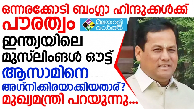 പൗരത്വം നിയമം ഭേദഗതി ചെയ്തതിലൂടെ ബംഗ്ലാദേശികളായ ഒന്നരക്കോടി ഹിന്ദുക്കള്ക്ക് പരത്വം ലഭിക്കുമെന്നും രാജ്യത്തെ ഭൂരിഭാഗം മുസ്്ലിംങളും പുറത്ത് പോകേണ്ടിവരുമെന്നും ആരോ പ്രചരണം നടത്തിയതാണ് ആസാമില് കലാപത്തിന് സമാനമായ സാഹചര്യം സൃഷ്ടിച്ചതെന്ന് മുഖ്യമന്ത്രി സര്ബാനന്ദ സോനോവാള്