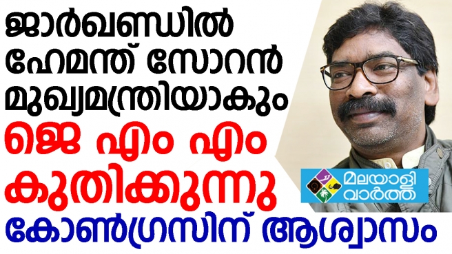 ജാർഖണ്ഡിൽ മുക്തി മോര്ച്ച(ജെഎംഎം) നേതാവ് ഹേമന്ത് സോറൻ മുഖ്യമന്ത്രിയാകുമെന്ന് എഐസിസി ജനറൽ സെക്രട്ടറി കെ.സി.വേണുഗോപാൽ അറിയിച്ചു. ജാർഖണ്ഡിലേത് പ്രതീക്ഷിച്ച വിജയമാണ്. പൗരത്വഭേദഗതി നിയമം ജാർഖണ്ഡ് ജനത തള്ളി. ബിജെപിയുടെ ധ്രുവീകരണ രാഷ്ട്രീയത്തിനേറ്റ തിരിച്ചടിയാണിതെന്നും കെ.സി.വേണുഗോപാൽ പറഞ്ഞു. നിയമസഭാ തെരഞ്ഞെടുപ്പിന്റെ വോട്ടെണ്ണൽ പുരോഗമിക്കുമ്പോൾ മഹാസഖ്യം 40 സീറ്റുകളിൽ ലീഡ് ചെയ്യുന്നു. ബിജെപിയും സഖ്യകക്ഷിയായ എജെഎസ്യുവും വെവ്വേറെയാണു മത്സരിച്ചത്. സഖ്യത്തെക്കുറിച്ച് തെരഞ്ഞെടുപ്പുഫലം വന്ന തീരുമാനമെടുക്കാമെന്ന നിലപാടിലാണ് എജെഎസ്യു.