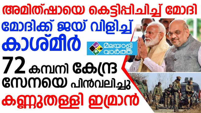 ജമ്മുകാശ്മീര് സമാധാനത്തിലേക്ക് പോകുന്നു എന്ന സന്ദേശം നല്കി 72 കമ്പനി കേന്ദ്രസേനയെ അടിയന്തരമായി പിന്വലിക്കാന് തീരുമാനിച്ചിരിക്കുകയാണ് കേന്ദ്ര സര്ക്കാര്. കേന്ദ്ര ആഭ്യന്തര മന്ത്രാലയമാണ് ഇതുസംബന്ധിച്ച തീരുമാനമെടുത്തത്. ഇതിലൂടെ ലോക രാഷ്ട്രങ്ങള്ക്ക് വലിയ സന്ദേശമാണ് ഇന്ത്യ നല്കുന്നത്. കാശ്മീരിനെ നശിപ്പിക്കുകയല്ല, മറിച്ച് ഇന്ത്യയിലെ മികച്ച സംസ്ഥാനമാക്കാനാണ് പ്രധാനമന്ത്രി നരേന്ദ്രമോദിയും ആഭ്യന്തരമന്ത്രി അമിത് ഷായും ശ്രമിക്കുന്നത്. അതാണ് ഫലം കണ്ടത്. കാശ്മീരില് ഇപ്പോള് സമാധനമാണ്. അതിനാല് തന്നെ ജനങ്ങള് മോദിയ്ക്കും അമിത്ഷായ്ക്കും ജയ് വിളിക്കുന്നുണ്ട്. ഇത് പാകിസ്ഥാനെ ശരിക്കും അലോരസപ്പെടുത്തുന്നുണ്ട്.
