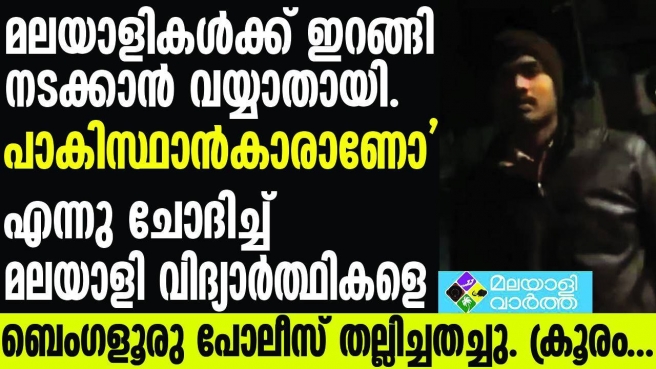 മലയാളികള്ക്ക് ഇറങ്ങി നടക്കാന് വയ്യാതായി.... പാക് സ്വദേശികളെന്നാരോപിച്ച് കേരളത്തില് നിന്നുള്ള വിദ്യാര്ത്ഥികള്ക്ക് ബെംഗളൂരു പോലീസിന്റെ ക്രൂരമര്ദ്ദനം....