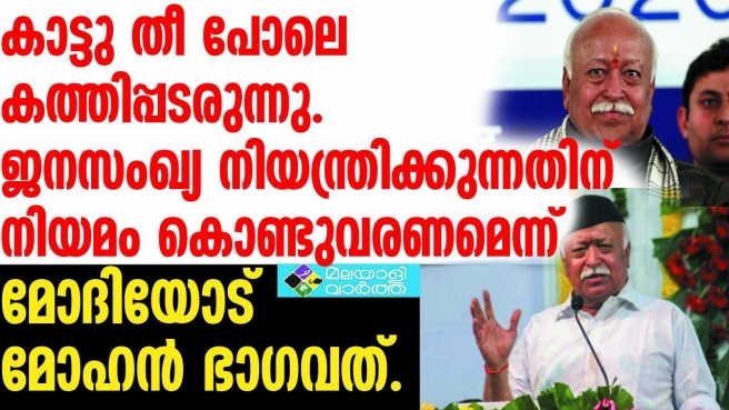 അനിയന്ത്രിത ജനസംഖ്യ വര്ധനവ് രാജ്യത്തെ പിന്നോട്ടടിക്കും... ഭാരതം വളര്ന്നുകൊണ്ടിരിക്കുന്ന രാഷ്ട്രമായതിനാല് അനിയന്ത്രിത ജനസംഖ്യ വര്ധനവ് ഗുണകരമാകില്ല ... ജനസംഖ്യ നിയന്ത്രിക്കുന്നതിന് നിയമം കൊണ്ടുവരണമെന്ന് മോദിയോട് മോഹന് ഭാഗവത്