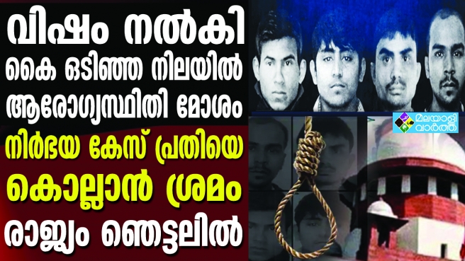 നിര്ഭയ കേസ് പ്രതിക്ക് ജയിലില് വെച്ച് വിഷം നല്കി; സ്ലോ പോയിസണ് ഏറ്റ പ്രതി ജയില് ആശുപത്രിയില് ചികില്സയിലായിരുന്നു; വധശിക്ഷ കാത്തുകഴിയുന്ന പ്രതി വിനയ് ശര്മ്മയ്ക്ക് തിഹാര് ജയിലില് വെച്ച് വിഷം നല്കിയതായി ആരോപണം