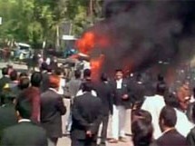 സംഭവത്തില് പ്രകോപിതരായ അഭിഭാഷകര് പൊലീസുകാര്ക്ക് നേരെ കല്ലേറു നടത്തുകയും സര്ക്കാര് വാഹനങ്ങള്ക്ക് തീയിടുകയും ചെയ്തു.