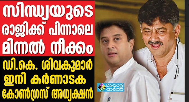 സിന്ധ്യയുടെ രാജിക്ക് പിന്നാലെ മിന്നല് നീക്കം; ഡി.കെ. ശിവകുമാര് ഇനി കര്ണാടക കോണ്ഗ്രസ് അധ്യക്ഷന്