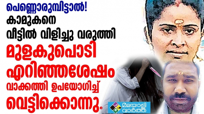 മുന് കാമുകനെ വീട്ടമ്മ മുളക് പൊടിയെറിഞ്ഞ് വെട്ടിക്കൊലപ്പെടുത്തിയ സംഭവത്തിന് പിന്നില് പ്രതികാരം... കാമുകന്റെ ശല്യം കാരണം വീട്ടില് വിളിച്ചു വരുത്തി മുളക് പൊടി എറിഞ്ഞശേഷം വാക്കത്തി ഉപയോഗിച്ച് വെട്ടിവീഴ്ത്തിയത് മക്കളുടെ ഭാവിയെ ഓര്ത്ത്...