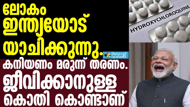 പ്രതിരോധമരുന്നു വികസിപ്പിക്കും വരെ കോവിഡ് ചികിത്സയില് ഫലപ്രദമായേക്കുമെന്ന് യുഎസ് പ്രസിഡന്റ് ഡോണള്ഡ് ട്രംപ് ആവര്ത്തിക്കുന്ന ഗുളികയാണ് ഹൈഡ്രോക്സിക്ലോറോക്വിന്. ഇതിന്റെ കയറ്റുമതി നിരോധനം ഇന്ത്യ ഭാഗികമായി പിന്വലിച്ചതു ചൊവ്വാഴ്ചയാണ്. അമേരിക്കയെ കൂടാതെ ബ്രസീല്, ഇസ്രായേല് തുടങ്ങിയ രാജ്യങ്ങള്ക്കും ഇന്ത്യ മരുന്ന് നല്കി.
