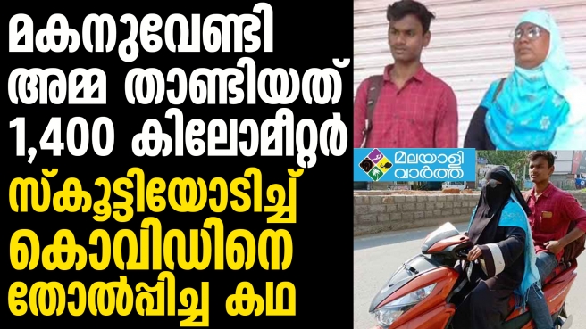 മകനുവേണ്ടി അമ്മ താണിയ കിലോമീറ്ററുകളില് കണ്ണുതള്ളി നാട്ടുകാര്; മൂന്നു ദിവസം കൊണ്ടു സഞ്ചരിച്ചത് 1400 കിലോമീറ്റര്; സ്കൂട്ടിയോടിച്ച് കൊവിഡിനെ തോല്പ്പിച്ച റസിയിയുടെ കഥ ഇങ്ങനെ