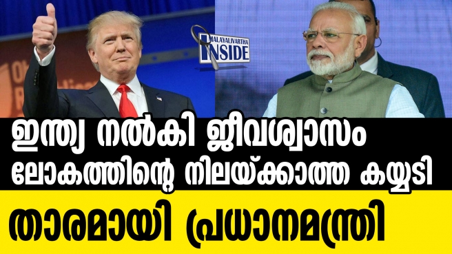 ഇന്ത്യ നല്കി ജീവശ്വാസം. ലോകത്തിന്റെ നിലയ്ക്കാത്ത കയ്യടി. തള്ളിക്കളഞ്ഞ കല്ല് മൂലക്കല്ല്. എന്നൊരു ചൊല്ലുണ്ട്. അതാണ് ഇപ്പോള് ലോകം കാണുന്നത്. ഇന്ത്യയുടെ മരുന്നുകളെ പരീക്ഷണങ്ങളെ പരമ്പരാഗത രീതികളെ ഒക്കെ ലോകമെങ്ങും ഒരിക്കലും മുറുകെ പിടിക്കുമെന്ന് ആരും കരുതിയില്ല. ഇപ്പോള് കാണുന്നു. ഇന്ത്യ ലോകത്തിന് കരുത്തായി. ആ യുദ്ധമുഖത്തെ രക്ഷകനായി ഇന്ത്യ മാറുന്നത് അഭിമാനത്തോടെ നോക്കി നില്ക്കുകയാണ് ഓരോ ഇന്ത്യക്കാരനും. ഇന്ത്യയില് നിന്ന് കയറ്റി അയച്ച ഹൈഡ്രോക്ലോറോക്വിന് മരുന്നുകള് അമേരിക്കയില് എത്തി.