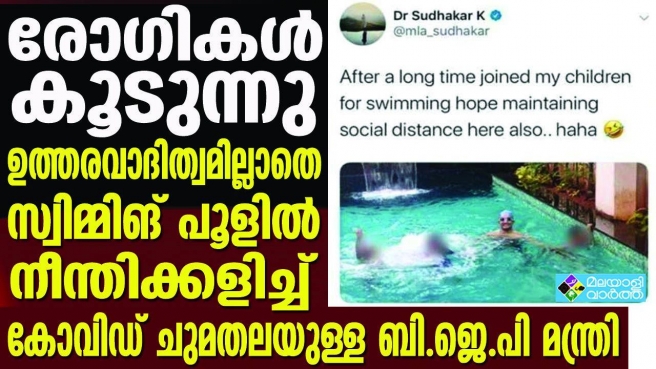 ലോക്ക്ഡൗണ് കാലം ആഘോഷമാക്കി കുട്ടികള്ക്കൊപ്പം സ്വിമ്മിങ് പൂളില് ചിലവഴിക്കുന്ന ചിത്രം പങ്കുവെച്ചതാണ് കര്ണാടക മെഡിക്കല് വിദ്യാഭ്യാസ വകുപ്പ് മന്ത്രി കെ. സുധാകര്. പക്ഷേ ആ ട്വീറ്റിലൂടെ പണി ഇരന്നു വാങ്ങുകയായിരുന്നു മന്ത്രി. സംസ്ഥാനത്തെ കോവിഡ് റെസ്പോണ്സ് ടീമിന്റെ ചാര്ജ് വഹിക്കുന്ന മന്ത്രി കെ. സുധാകര് ഈ പ്രവര്ത്തിയുടെ വളരെ നിരുത്തരവാദിത്തപരമായാണ് പെരുമാറുന്നതെന്ന തരത്തിലാണ് അതിനുതാഴെ കമന്റുകള് പ്രത്യക്തപ്പെട്ടത്. മാത്രമല്ല വിമര്ശനവുമായി കോണ്ഗ്രസ് അധ്യക്ഷന് ഡി.കെ. ശിവകുമാറും രംഗത്തെത്തി. സംസ്ഥാനത്തെ കോവിഡ് റെസ്പോണ്സ് ടീമിന്റെ ചാര്ജ് വഹിക്കുന്ന മന്ത്രി കെ. സുധാകര് ഇത്രയും നിരുത്തരവാദിത്തപരമായി പെരുമാറരുത് എന്ന് ശിവകുമാറും വിമര്ശിച്ചു.