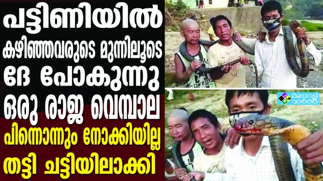 സാമൂഹികമാധ്യമങ്ങളില് പ്രചരിച്ച വീഡിയോയില് മൂന്ന് പേര് ചത്ത രാജവെമ്പാലയെ തോളിലിട്ട് നില്ക്കുന്നതായി കാണാം. കൂടാതെ പാമ്പിനെ വെട്ടി വൃത്തിയാക്കി കഷണങ്ങളാക്കാന് വാഴയിലകള് നിരത്തിയിരിക്കുന്നതും വീഡിയോയിലുണ്ട്.