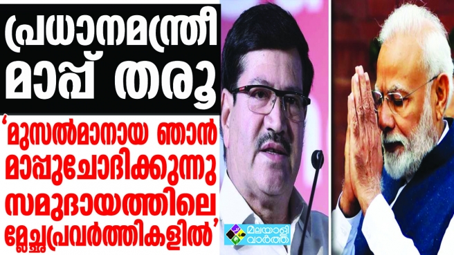 പ്രധാനമന്ത്രി മാപ്പ് തരൂ. ഇന്ത്യന് മുസല്മാനായ ഞാന് മാപ്പുചോദിക്കുന്നു. സമുദായത്തിലെ മ്ലേച്ഛപ്രവര്ത്തികളില്.എന്റെ സമുദായത്തില്പ്പെട്ടവര്ക്കായി രാജ്യത്തെ നിയമം പാലിക്കുന്ന ഒരു ഇന്ത്യന് മുസ്ലിം എന്ന നിലയില് ഞാന് മാപ്പ് ചോദിക്കുന്നു...