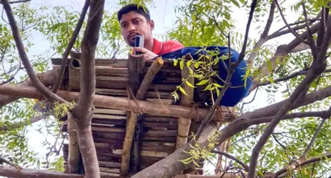 ലോക് ഡൗൺ പ്രഖ്യാപിച്ചതിൽ പിന്നെ ഓണ്ലൈന് ക്ലാസുകളെടുക്കാന് മൊബൈല് ഇന്റര്നെറ്റിന് റേഞ്ച് ഇല്ലാത്തതിനെ തുടർന്നാണ് 35കാരനായ അധ്യാപകന്റെ ഈ സാഹസം. വീടിനടുത്തുള്ള വേപ്പ് മരത്തില് ഒരു തട്ടുണ്ടാക്കി അതിൽ ഇരുന്നാണ് സുബ്രത കുട്ടികള്ക്ക് ഓണ്ലൈനായി ചരിത്രപാഠം പഠിപ്പിക്കുന്നത്. കൊല്ക്കത്തയിലെ അഡമാസ് യൂണിവേഴ്സിറ്റിയിലെയും റൈസ് എജ്യുക്കേഷനിലെയും അധ്യാപകൻ കൂടിയാണ് ഇദ്ദേഹം.