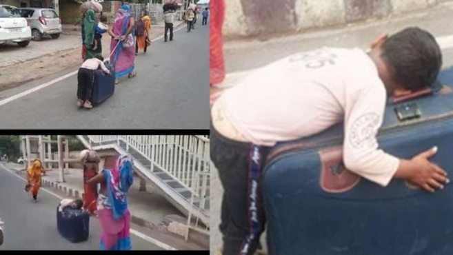 അത്തരത്തിൽ അതിഥി തൊഴിലാളികളുടെ പാലായനത്തിന്റെ നിരവധി വീഡിയോകളും ചിത്രങ്ങളും നേരത്തെ തന്നെ വൈറലായിരുന്നു. എന്നാൽ അത്തരത്തിൽ ഒരു വീഡിയോയാണ് ഇപ്പോൾ സൈബർ ലോകത്തെ കണ്ണീരിലാക്കിയിരിക്കുന്നത്. നടന്ന് തളർന്ന കുട്ടിയെ ട്രോളി ബാഗിൽ കിടത്തി വലിച്ചു കൊണ്ട് പോകുന്ന അമ്മയെയാണ് ദൃശ്യങ്ങളിൽ കാണുന്നത് തന്നെ. തളർന്നുകിടക്കുന്ന കുട്ടിയുടെ അരയ്ക്ക് മേൽ മാത്രമാണ് പെട്ടിയുടെ മുകളിലുള്ളത്. ബാക്കിയുള്ള ഭാഗങ്ങളൊക്കെ താഴെയാണ് എന്നത് വിഡിയോയിൽ കാണുവാൻ സാധിക്കും. ഇതേതുടർന്ന് വീടണയാൻ കുട്ടിയുടെ അമ്മയും ഒപ്പമുള്ളവരും വേഗത്തിൽ നടന്നു പോകുന്നതും ദൃശ്യങ്ങളിൽ കാണാം.