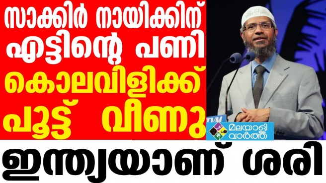 കള്ളപ്പണം വെളുപ്പിക്കല്, വിദ്വേഷപ്രഭാഷണം തുടങ്ങിയ വകുപ്പുകളില് ഇന്ത്യയില് നിയമനടപടി നേരിടുന്ന സാക്കിര് നായിക്ക് 2016-ല് മലേഷ്യയിലേക്ക് രക്ഷപ്പെടുകയായിരുന്നു. മലേഷ്യന് പൗരത്വമുള്ള ഇയാളെ വിട്ടുതരാന് ഇന്ത്യ കഴിഞ്ഞ ആഴ്ച ആവശ്യപ്പെട്ടിട്ടുണ്ട്.
