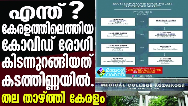 ക്വാറന്റൈന് നിര്ദേശിക്കപ്പെട്ട അയല് സംസ്ഥാനത്തു നിന്നെത്തിയ ആളെ സ്വരൈ്യവിഹാരത്തിനു വിട്ട് അധികൃതരുടെ ഗുരുതര കൃത്യ വിലോപം എന്ന രീതിയിലുള്ള വാര്ത്ത പുറത്ത് വരികയാണ് കഴിഞ്ഞദിവസം കോവിഡ് സ്ഥിരീകരിച്ചയാള് കേരളത്തിലെത്തിയ ദിവസം തങ്ങിയത് കടത്തിണ്ണയില്. ജില്ലാഭരണകൂടം പുറത്തുവിട്ട റൂട്ട് മാപ്പിലാണ് വിവരമുള്ളത്. ചെന്നൈയില് നിന്ന് പാസില്ലാതെ എത്തിയ ഇദ്ദേഹം രണ്ട് കോവിഡ് കെയര് സെന്ററുകളില് പോയെങ്കിലും താമസസൗകര്യം ലഭിച്ചില്ല. സഞ്ചാരപാതയിലുണ്ടായിരുന്നവരെ ക്വാറന്റീനിലാക്കും. ചെന്നൈയില് നിന്ന് വന്ന കോവിഡ് രോഗി കിടന്നുറങ്ങിയത് കടത്തിണ്ണയില്. രണ്ട് ദിവസം മുന്പ് കേരളത്തില് രോഗം സ്ഥിരീകരിച്ച യുവാവാണ് ആരോഗ്യ പ്രവര്ത്തകരെ ആശങ്കയിലാഴ്ത്തിയത്.