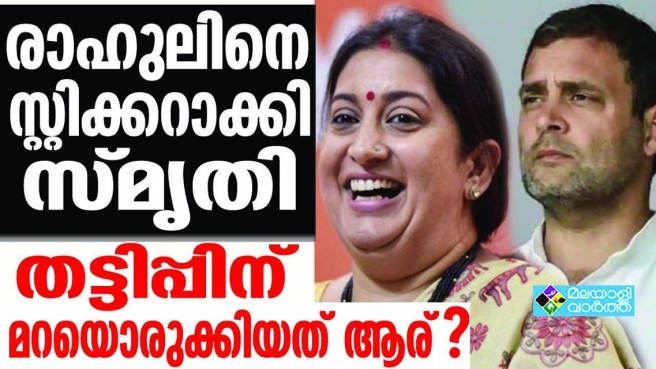 രാഹുലിനെ സ്റ്റിക്കറാക്കി സ്മൃതി; രാഹുല് ഗാന്ധിയോട് ബാഹുമാനത്തിന്റെ ഒരു കണിക പോലുമില്ലെന്ന് കേന്ദ്രമന്ത്രി സ്മൃതി ഇറാനി