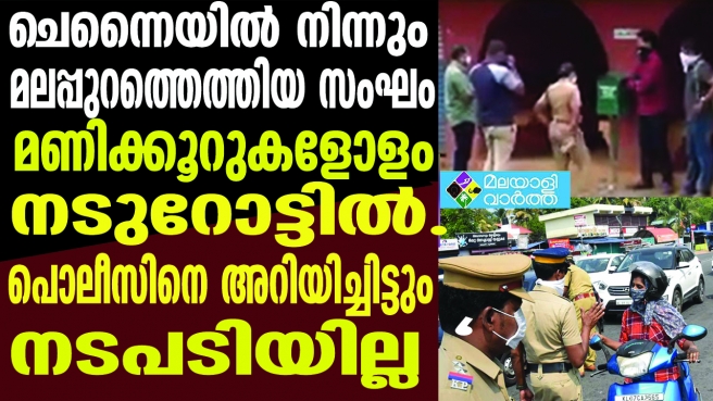 കോവിഡ് അതിതീവ്ര മേഖലയിൽനിന്നെത്തിയവർ തിരക്കേറിയ ടൗണില് കൂട്ടംകൂടി നിന്നതു ആളുകൾക്കിടെയിൽ പരിഭ്രാന്തിയുണ്ടാക്കി. നാട്ടുകാർ അറിയിച്ചതിനെത്തുടർന്നു സ്ഥലത്തെത്തിയ മലപ്പുറം പൊലീസ് ഇവരെ വാഹനങ്ങളിൽ അതതു സ്ഥലങ്ങളിലെ ക്വാറന്റീൻ കേന്ദ്രത്തിലേക്ക് അയച്ചു. തുടർന്നു ഫയർഫോഴ്സ് എത്തി ഇവർ നിന്നിരുന്ന സ്ഥലം അണുവിമുക്തമാക്കി. ചെന്നൈയിലെ മണലിയിൽനിന്നു മലയാളി അസോസിയേഷൻ ഏർപ്പാടാക്കിയ ബസിലാണു 12 മലപ്പുറം സ്വദേശികളടക്കം 26 പേർ നാട്ടിലേക്കു പുറപ്പെട്ടത്.