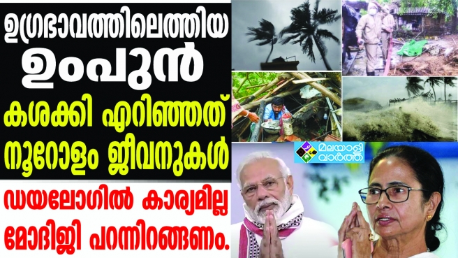 ഉഗ്രഭാവത്തിലെത്തിയ ഉംപുന് കശക്കി എറിഞ്ഞത് നൂറോളം ജീവനുകൾ; ഡയലോഗിൽ കാര്യമില്ല മോദിജി പറന്നിറങ്ങണം; പശ്ചിമബംഗാളിലും ഒഡിഷ തീരത്തുമായി ദുരന്തം വിതച്ച് ഉംപുൺ ചുഴലിക്കാറ്റ്