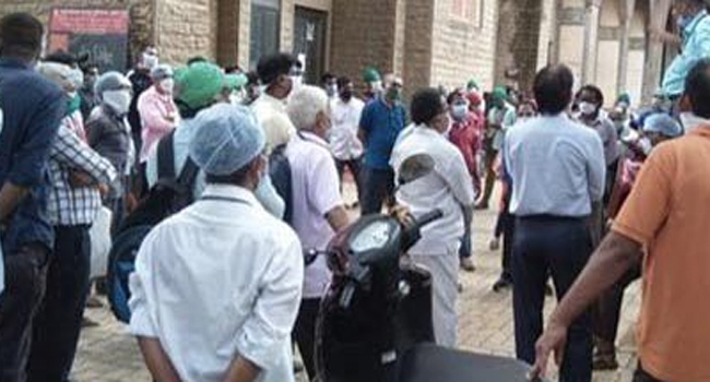 ആശുപത്രിയിലെ കോവിഡ് വാര്ഡില് ജോലി ചെയ്തിരുന്ന ഇദ്ദേഹത്തിന് ശാരീരികാസ്വസ്ഥ്യം അനുഭവപ്പെട്ടിരുന്നുവെങ്കിലും ആശുപത്രി അധികൃതര് അവധി നല്കിയിരുന്നില്ല. എന്നാല് കോവിഡ് ബാധിച്ചാണോ ഇദ്ദേഹം മരിച്ചതെന്ന് വ്യക്തമല്ല. പരിശോധന ഫലം വന്നുകഴിഞ്ഞു മാത്രമേ ഇതു സ്ഥിരീകരിക്കുകയുള്ളു. മരിച്ചയാളുടെ കുടുംബത്തിന് സാമ്പത്തിക സഹായം നല്കണമെന്നും വീട്ടിലെ ഒരാള്ക്ക് ആശുപത്രിയില് ജോലി നല്കണമെന്നും പ്രതിഷേധക്കാര് ആവശ്യപ്പെട്ടു.