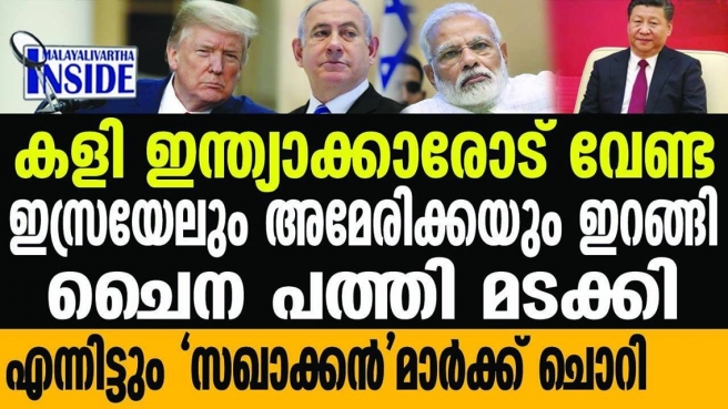 ഇതേ വാര്ത്തയ്ക്കൊപ്പം ചൈനയുടെ വാദങ്ങള് ശരിയാണെന്നു തെളിയിക്കാനാണ് പാക് പ്രധാനമന്ത്രിയുടെ ഇന്ത്യ വിരുദ്ധ പരാമര്ശവും പത്രത്തിലുണ്ട്. പൗരത്വനിയമത്തിലൂടെ ബംഗ്ലാദേശിനും അതിര്ത്തി തര്ക്കങ്ങളിലൂടെ നേപ്പാള്, ചൈന, പാകിസ്ഥാന് എന്നീ രാജ്യങ്ങള്ക്കും ഗൂഢയുദ്ധങ്ങള്ക്ക് ഇന്ത്യ ശ്രമിക്കുകയാണെന്നും ട്വീറ്റുകളിലൂടെ ഇമ്രാന് ഖാന് കുറ്റപ്പെടുത്തിയെന്നാണ് വാര്ത്ത. അതേസമയം, ഇന്ത്യന് അതിര്ത്തികളില് ചൈന തുടര്ച്ചയായി പ്രകോപനം സൃഷ്ടിക്കുന്നതിനിനെ പ്രധാനമന്ത്രി നരേന്ദ്ര മോദി അടിയന്തരയോഗം വിളിച്ചിരുന്നു. ആഗോളതലത്തില് ചൈനയ്ക്കെതിരെയുളള ശക്തമായ നീക്കമാണ് നടക്കുന്നത്. അമേരിക്ക നടത്തുന്ന ഈ നീക്കത്തിന് ഇസ്രയേല് പരസ്യ പിന്തുണ നല്കിയിട്ടുണ്ട്. സുരക്ഷാ സാങ്കേതിക വിഷയങ്ങളില് ചൈനയെ ഒരുകാരണവശാലും വിശ്വസിക്കരുതെന്ന അമേരിക്കന് പ്രസ്താവനയ്ക്ക് ഇസ്രായേല് പിന്തുണ പ്രഖ്യാപിച്ചു. ബെഞ്ചമിന് നെതന്യാഹുവിന്റെ നേതൃത്വത്തില് സര്ക്കാര് വീണ്ടും അധികാരത്തിലേറിയതോടെയാണ് ശക്തമായ നയപരിപാടികള് വേഗത്തിലാക്കുന്നത്. മെയ് 13ന് ബീജിംഗുമായി ഇസ്രായേല് ഉണ്ടാക്കാനുദ്ദേശിക്കുന്ന പ്രതിരോധ വാണിജ്യ കരാറുകളെപ്പറ്റി പുനര്ചിന്തനം വേണമെന്ന് അമേരിക്കന് സ്റ്റേറ്റ് സെക്രട്ടറി മൈക്ക് പോംപിയോ അഭിപ്രായപ്പെട്ടിരുന്നു. അമേരിക്കയുടെ ചൈനയോടുള്ള നയം ഇസ്രായേല് ബന്ധത്തിലും കാത്തുസൂക്ഷിക്കുന്നതിന്റെ ഭാഗമായാണ് നെതന്യാഹു ഭരണകൂടത്തിന്റെ പുതിയ നീക്കം. ഈ നീക്കങ്ങളെല്ലാം മുന്കൂട്ടി കണ്ടാണ് ഇന്ത്യന് അതിര്ത്തിയിലെ പ്രകോപനം കമ്മ്യൂണിസ്റ്റ് ചൈന താത്കാാലികമായി ഉപേക്ഷിച്ചത്. ഇതൊന്നും വാര്ത്തയാക്കുമ്പോള് അത്ര ആവേശം കാണിക്കാത്തവര് ചില കാര്യങ്ങളില് വല്ലാത്ത പ്രാധാന്യം നല്കുന്നു.