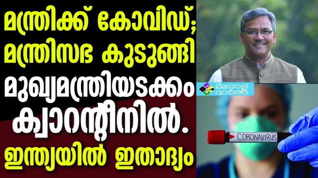 മുഖ്യമന്ത്രി ത്രിവേന്ദ്ര സിങ് റാവത്തും മറ്റു മന്ത്രിമാരും ക്വാറന്റീനില് ... മെയ് 29ന് നടന്ന മന്ത്രിസഭാ യോഗത്തില് ഇവര്ക്കൊപ്പം പങ്കെടുത്ത സംസ്ഥാനത്തെ ഒരു മന്ത്രിക്ക് കൊറോണവൈറസ് സ്ഥിരീകരിച്ചതിന് പിന്നാലെയാണിത്