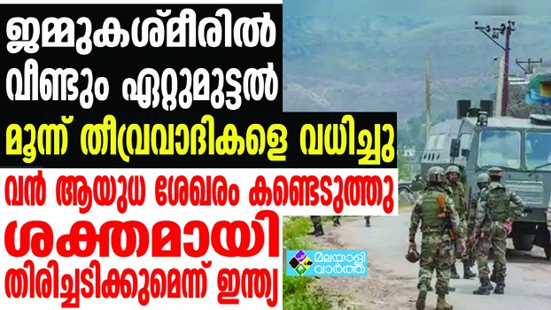 ജമ്മുകശ്മീരിൽ വീണ്ടും ഏറ്റുമുട്ടൽ .. മൂന്ന് തീവ്രവാദികളെ വധിച്ചു..വൻ ആയുധ ശേഖരം കണ്ടെടുത്തു ശക്തമായി തിരിച്ചടിക്കുമെന്ന് ഇന്ത്യ