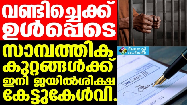 വണ്ടിച്ചെക്ക് നല്കുന്നത് ഉള്പ്പെടെ ഒട്ടേറെ സാമ്പത്തിക കുറ്റങ്ങള്ക്ക് തടവുശിക്ഷ ഒഴിവാക്കാന് കേന്ദ്ര സര്ക്കാര് നീക്കം... ഇനി ജയില്ശിക്ഷ കേട്ടുകേള്വി