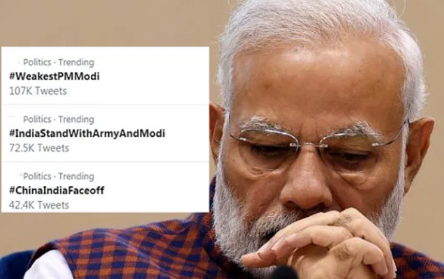 ലഡാക്ക് അതിര്ത്തിയില് ഇന്ത്യ-ചൈന സംഘര്ഷത്തില് സൈനികര്ക്ക് ജീവന് നഷ്ടപ്പെട്ടിട്ടും പ്രതികരിക്കാത്ത പ്രധാനമന്ത്രി നരേന്ദ്രമോദിയ്ക്കെതിരായി ട്വിറ്ററിലെ ഹാഷ്ടാഗ് ക്യാംപെയ്ന് ട്രെന്ഡിംഗായി. വീക്കസ്റ്റ് പ്രൈംമിനിസ്റ്റര് അഥവാ ദുര്ബലനായ പ്രധാനമന്ത്രി എന്ന ഹാഷ്ടാഗാണ് ട്വിറ്ററില് വലിയ രീതിയില് പ്രചരിക്കുന്നത്.
