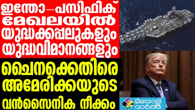 ഇന്ത്യ-ചൈന അതിര്ത്തി സംഘര്ഷം സൈനികരുടെ വീരമൃതൃുവില് എത്തിയതോടെ ചൈനയെ ലക്ഷ്യമാക്കി അമേരിക്കയുടെ സൈനിക നീക്കം. പസിഫിക് സമുദ്ര മേഖലയില് 24 മണിക്കൂറിനുള്ളില് വന് സൈനിക വിന്യാസം അമേരിക്ക നടത്തിയെന്ന് യു.എസ് മാധ്യമങ്ങള് റിപ്പോര്ട്ട് ചെയ്യുന്നു. യുദ്ധക്കപ്പലുകള്ക്ക് പുറമെ ഇന്തോ-പസിഫിക് സമുദ്ര മേഖലയിലേക്ക് മൂന്ന് വിമാനവാഹിനികളാണ് അമേരിക്ക അധികമായി വിന്യസിച്ചിരിക്കുന്നത്. . 2017 ല് ഉത്തര കൊറിയ ആണവ പരീക്ഷണം നടത്തിയതിനെ തുടര്ന്നുണ്ടായ സംഘര്ഷത്തിനു ശേഷം ആദ്യമായാണ് ഇത്രയധികം വിമാനവാഹിനികള് പസിഫിക് സമുദ്ര മേഖലയില് എത്തുന്നത്. മൂന്നു മൂന്ന് വിമാനവാഹിനികളിലായി 210 യുദ്ധവിമാനങ്ങള് ഉണ്ടെന്നും യുഎസ് മാധ്യമങ്ങള് റിപ്പോര്ട്ട് ചെയ്യുന്നു. മേഖലയില് കൂടുതല് യുദ്ധക്കപ്പലുകള് അമേരിക്ക വിന്യസിച്ചിട്ടുണ്ടെന്നും കൂടുതല് വിവരങ്ങള് വൈറ്റ്ഹൗസ് പുറത്തുവിട്ടിട്ടില്ലെന്നും മാധ്യമങ്ങള് പറയുന്നു.