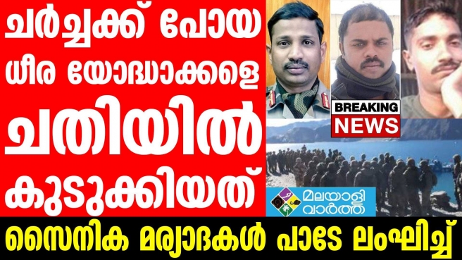 1975-നുശേഷം ആദ്യമായാണ് ഇരുസേനയും തമ്മിലുള്ള സംഘര്ഷത്തില് രക്തം ചിന്തുന്നത്. 132 ഇന്ത്യന് സൈനികര്ക്ക് പരിക്കേറ്റതായും സ്ഥിരീകരിക്കാത്ത റിപ്പോര്ട്ടുണ്ട്. കിഴക്കന് ലഡാക്കിലെ ഗാല്വന് താഴ്വരയില് തിങ്കളാഴ്ച രാത്രിനടന്നത് സൈനിക മര്യാദകള് പാടേ ലംഘിച്ചുള്ള ചൈനീസ് ക്രൂരത. അറുനൂറോളം വരുന്ന ചൈനീസ് സൈനികരാണ് എണ്ണത്തില് കുറവായ ഇന്ത്യന്സേനയെ നേരിടാനെത്തിയത്. ഇവര് കടുത്ത ആക്രമണമാണ് നടത്തിയതെന്നും റിപ്പോര്ട്ടുകള് സൂചിപ്പിക്കുന്നു. സേനാപിന്മാറ്റം നടക്കുന്നതിനിടെ എതിര്വശത്തെ ഉയര്ന്ന കുന്നിന്മുകളില് സ്ഥാനംപിടിച്ച ചൈനീസ് ഭടന്മാര് അവിടെനിന്ന് പിന്മാറാന് തയ്യാറാകാതിരുന്നതിനെത്തുടര്ന്ന് ചര്ച്ചയ്ക്കുവേണ്ടിയാണ് കേണല് സന്തോഷ് കുമാറും ഹവീല്ദാര് കെ. പളനിയും സിപ്പോയ് കുന്തന്കുമാര് ഓഝയും അവിടേക്കുപോയത്.