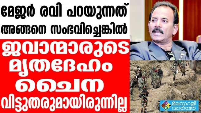 ഗാല്വന് താഴ്വരയില് ഇരു സൈന്യങ്ങളും തമ്മില് ഉന്തും തള്ളും ഉണ്ടായിക്കാണും അപ്പോഴുണ്ടായ മണ്ണിടിച്ചിലാകാം ഇത്തരമൊരു ദുരന്തത്തിലേക്ക് നയിച്ചതെന്ന് മേജര് രവി