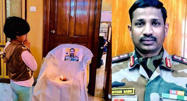 അച്ഛന്റെ ചിത്രത്തിനു മുന്നിൽ തെളിയിച്ച ചിരാത് നോക്കി കൂപ്പുകയ്യോടെ നിൽക്കുകയാണ് കേണൽ സന്തോഷ് ബാബുവിന്റെ കുഞ്ഞുമകൾ. ഡൽഹിയിൽ രണ്ടു മക്കളെയും ചേർത്ത് പിടിച്ച് സന്തോഷിന്റെ ഭാര്യ ഒരു വേള നടുങ്ങി നിന്നു. ലഡാക്കിൽ നിന്ന് സന്തോഷ് മടങ്ങിയെത്തിയാലുടൻ നാട്ടിലേക്കു മടങ്ങാമെന്ന പ്രതീക്ഷയിൽ കാത്തിരിക്കുകയായിരുന്നു അവർ.