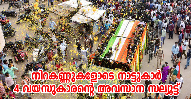കരഞ്ഞ മുഖവുമായി ഒരു നാട്... മാതൃരാജ്യത്തിനായി വീരമൃത്യു വരിച്ച തെലങ്കാന സ്വദേശി കേണല് ബികുമല്ല സന്തോഷ് ബാബുവിന് അവസാന സല്യൂട്ടുമായി നാലു വയസുകാരന് അനിരുദ്ധ്; കോവിഡ് ഭീതിയിലും ആയിരങ്ങള് ഓടിയെത്തി